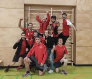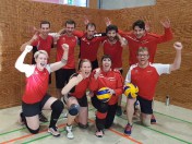 Nach der Mittagspause ging es gegen SKS Rumms Bumms. Nachdem wir dieses Team am letzten Spieltag quasi überrollt hatten, gingen wir die Sache ein wenig zu lässig an. SKS zeigte sich in Topform und gewann den ersten Satz klar und verdient mit 25:17. Aber wir ließen uns nicht unterkriegen und zeigten, dass wir zu Recht an der Tabellenspitze stehen: Die nächsten zwei Sätze gingen klar an uns.